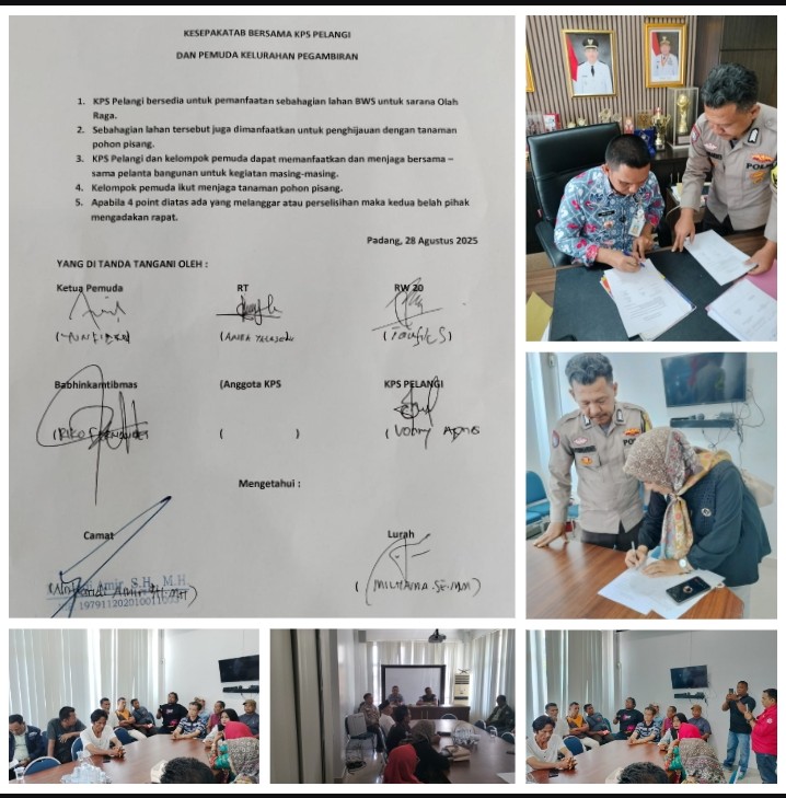 Padang | Konflik kecil yang berawal dari perambahan batang pisang di lahan BWS V Pagambiran Ampalu Nan XX akhirnya berakhir damai. Perselisihan yang melibatkan Kelompok Pecinta Sungai (KPS) Pelangi dengan warga RW 20 itu berhasil diselesaikan melalui mediasi yang diinisiasi oleh Bhabinkamtibmas Kelurahan Pagambiran Ampalu Nan XX Polsek Lubuk Begalung, Polresta Padang, Bripka Riko Fernandes, Kamis (28/8/2025).