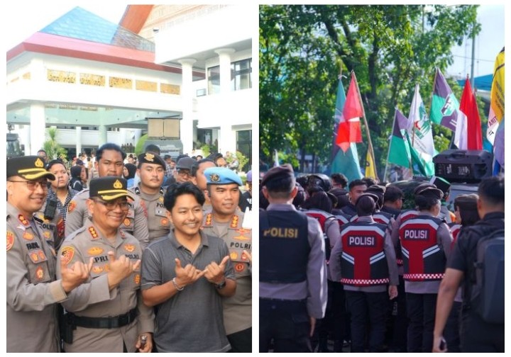 Di tengah keramaian itu, barisan aparat keamanan tampak berdiri tenang. Polda Sumbar menurunkan 671 personel gabungan, dengan dukungan 140 personel TNI. Bukan untuk menakut-nakuti, melainkan untuk memastikan bahwa setiap aspirasi bisa tersampaikan dengan aman. Senyum ramah, sapaan hangat, hingga pendekatan persuasif menjadi wajah pengamanan hari itu. “Kami di sini untuk menjaga, bukan untuk menghalangi,” begitu pesan yang tampak dari gestur aparat di lapangan.