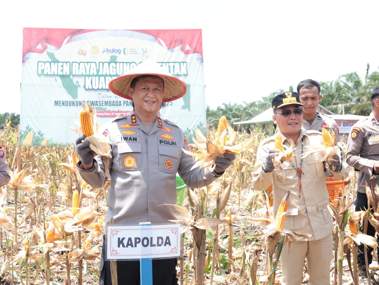 Palangka Raya | Kapolda Kalimantan Tengah Irjen Pol Iwan Kurniawan bersama Gubernur H. Agustiar Sabran melaksanakan panen raya jagung kuartal III, di Desa Anjir, Kec. Kahayan Hilir, Kab. Pulang Pisau (Pulpis), Sabtu (27/9/2025).